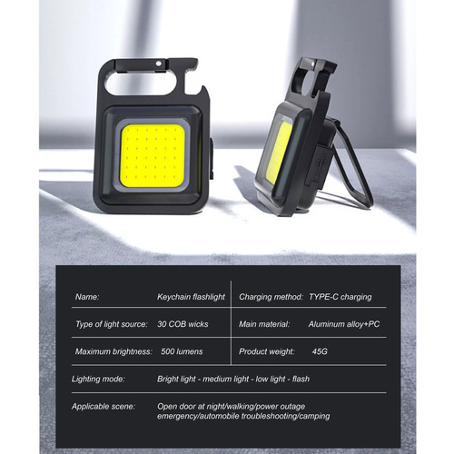 قوه جمع و جور و قدرتمند که برای استفاده در همه جا و برای همه کس ضروری می باشد ، در خانه ، محل کار ، خودرو ، پارک ، کوهنوردی، کمپ های شبانه، ماهیگیری و .... همچنین این چراغ را میتوانید روی مونوپاد یا سه پایه ببندید. این گجت کاربردی از کیفیت ساخت بسیار خوبی برخوردار است و بدنه آن از فلز (آلیاژ آلومینیوم) ساخته شده است و ضد ضربه، ضد رطوبت و ضدآب است (مقاومت در برابر آب با استاندارد IPX5 waterproof). این محصول شارژی است و از یک باطری داخلی ظرفیت بالا تغذیه میکند که با کابل USB تایپ C به وسیله آداپتور یا پاوربانک قابل شارژ است. این محصول علاوه بر حجم جمع و جور آن ،بسیار سبک هم ساخته شده است. با فشار دادن کلید روشن خاموش کن چراغ قوه سه حالت کم نور - پر نور و چشمک زن فعال می شود و برای استفاده از حد اکثر توان باید کلید را فشار داده و نگهدارید . در این گجت بسیار کاربردی حالت های مختلفی برای سهولت استفاده تعبیه شده مانند هنربای قوی ، گیره تکیه کننده ، قفل جاکلیدی و آویز و همچنین یک در بازکن بطری نیز در آن تعبیه شده است و آن را به یک همراه کامل یا یک جا کلیدی کامل و واجب تبدیل کرده است.