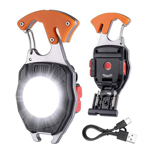 چراغ قوه چند کاره کمپینگ یک محصول کوچک و جمع و جور است که به راحتی در جیب جا می شود. در سفر، کمپینگ، محل کار، هنگام تعمیرات، در محیطهای باز و هر جایی که نیازمند روشنایی باشید این چراغ قوه مفید خواهد بود.می توانید آن را به کیفتان یا بند کمر شلوارتان وصل کنید. با فشردن دکمه خاموش و روشن آن برای مرتبه اول نور مهتابی با شدت زیاد چراغ قوه چند کاره کمپینگ یک محصول کوچک و جمع و جور است که به راحتی در جیب جا می شود. در سفر، کمپینگ، محل کار، هنگام تعمیرات، در محیطهای باز و هر جایی که نیازمند روشنایی باشید این چراغ قوه مفید خواهد بود.می توانید آن را به کیفتان یا بند کمر شلوارتان وصل کنید. با فشردن دکمه خاموش و روشن آن برای مرتبه اول نور مهتابی با شدت زیاد خواهد شد. جنس آلیاژ بدنه چراغ قوه چند کاره آلومینیوم است که در برابر ضربه مقاوم است. برای شارژ آن کافی است از کابل شارژ type C که به همراه چراغ قوه قرار دارد، استفاده کنید.