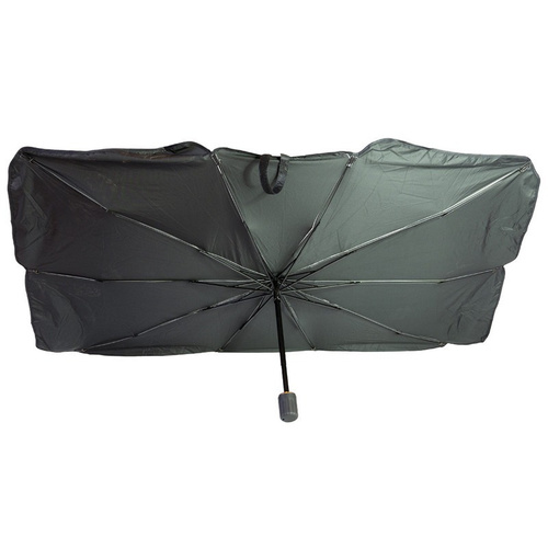 این محصول برای هر گونه محافظت در برابر نور خورشید عالی است.طراحی شده با پارچه محافظ UV طراحی هوشمندانه این چتر (sun shade umberella) نگران افتادن آفتاب گیر از شیشه جلو خود نباشید و آفتابگیر شیشه جلو چتری دارای ده دنده فولادی است که به خوبی پشتیبانی و از سقوط جلوگیری می کند.طراحی تلسکوپی آفتاب گیر، باعث شده این محصول استفادهای آسان داشته باشد و باز و بسته کردن آن سریع و بدون زحمت باشد.طراحی فوقالعادهای ک با پوشش ضد آفتاب روکش نقره به شدت نور خورشید را منعکس می کند و دمای داخل خودرو را کاهش می دهد و از خودروی شما محافظت می کند.سایبان ضد آفتاب ابزاری کاربردی برای محافظت از داخل خودرو در برابر نور UV و کمک به کاهش دمای داخل ماشین است