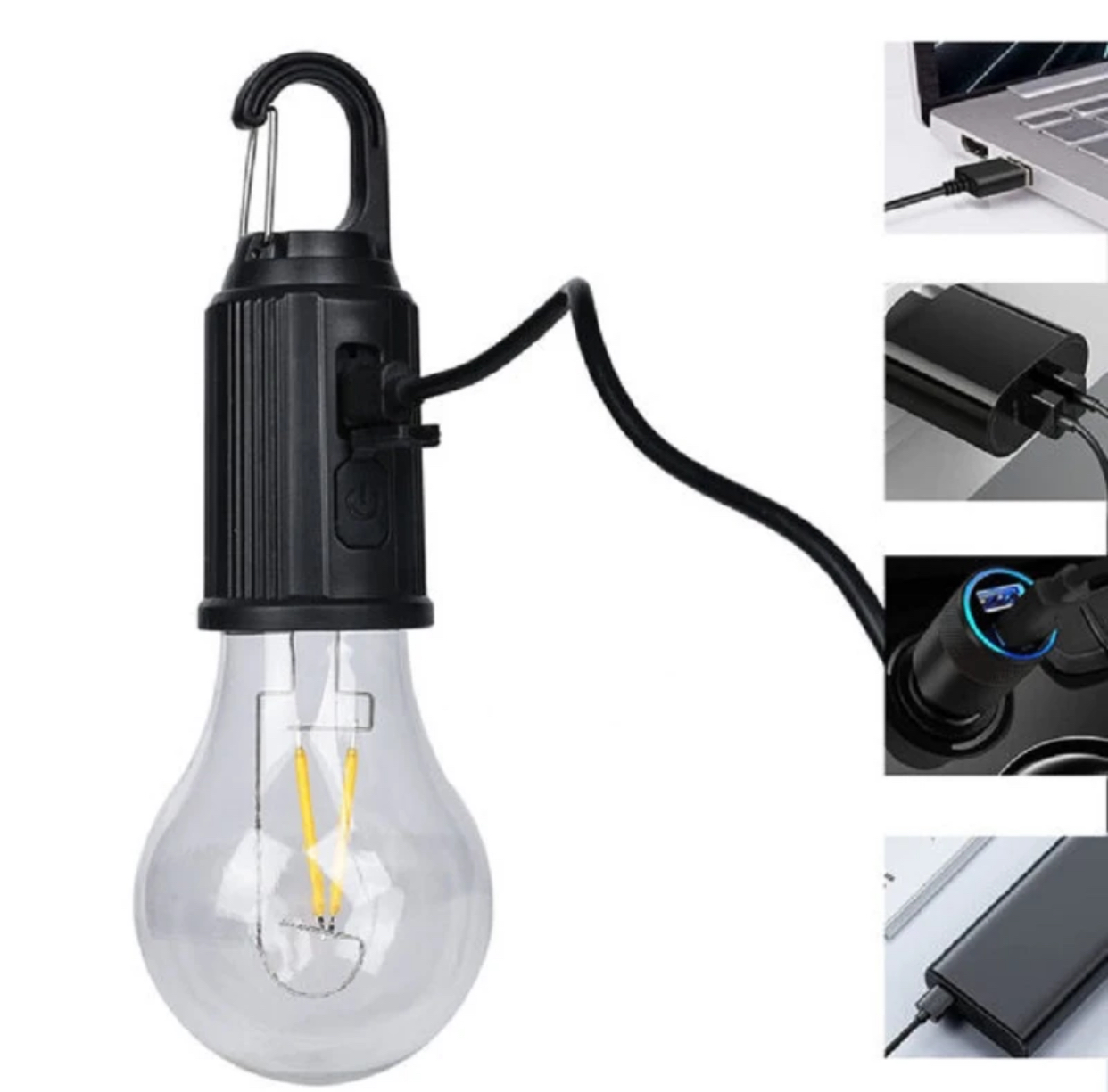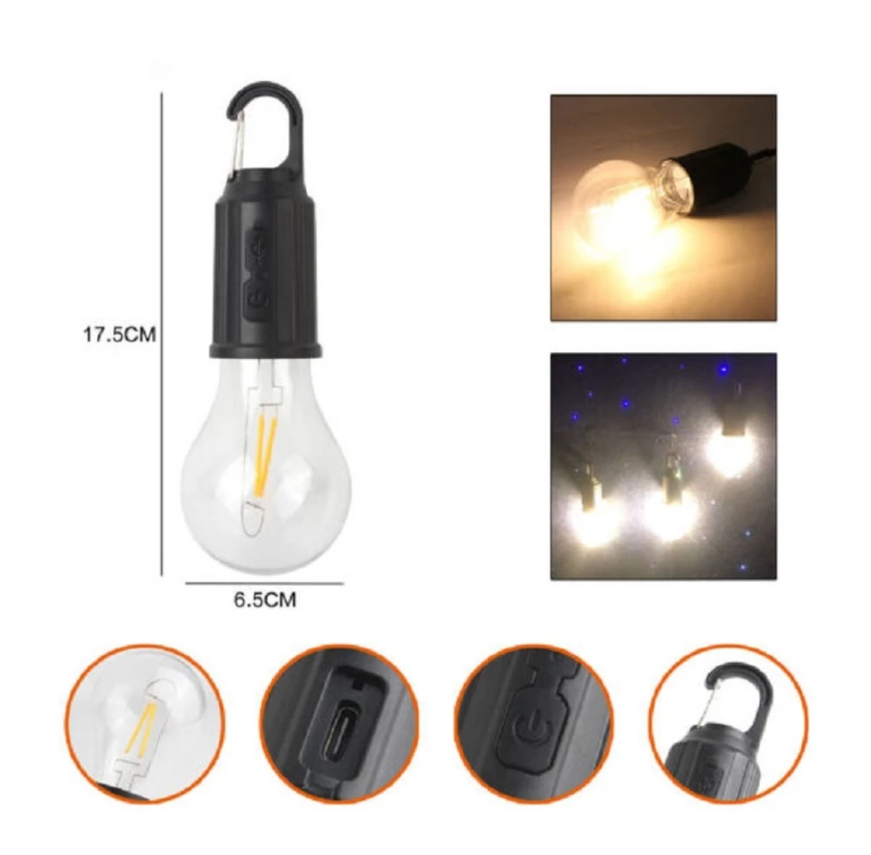 لامپ شارژی کمپی یک لامپ کاربردی با نور آفتابی و سه شدت نوری متفاوت است. این مدل لامپ اضطراری مشابه لامپهای عادی طراحی شده است؛ با این تفاوت که روی بدنه یک درگاه برای شارژ و یک دکمه برای On/Off در نظر گرفته شده است. در انتهای لامپ نیز یک گیرهی کارابین مانند قرار دارد که کمک میکند بتوان لامپ را به راحتی آویزان کرد. از این مدل لامپ معمولا در کمپینگها استفاده میشود و اگر اهل سفر هستید، توصیه میشود این مدل لامپ را همراه خود داشته باشید. با فشردن دکمهی روی بدنه، لامپ با شدت نور زیاد روشن میشود؛ با فشردن مجدد دکمه میتوان شدت نور را کمتر کرد. بعد از چهار بار فشردن دکمه نیز لامپ خاموش خواهد شد. برای شارژ لامپ شارژی کمپی فیلامنتی از کابل USB همراه محصول استفاده میشود. این کابل را میتوان به آداپتور شارژر، پاوربانک، لبتاب و … متصل کرد. لامپ بعد از 4 الی 6 ساعت شارژ میشود و با توجه به نور انتخابی و میزان استفاده، میتوان تا چند ساعت از نور آن استفاده کرد