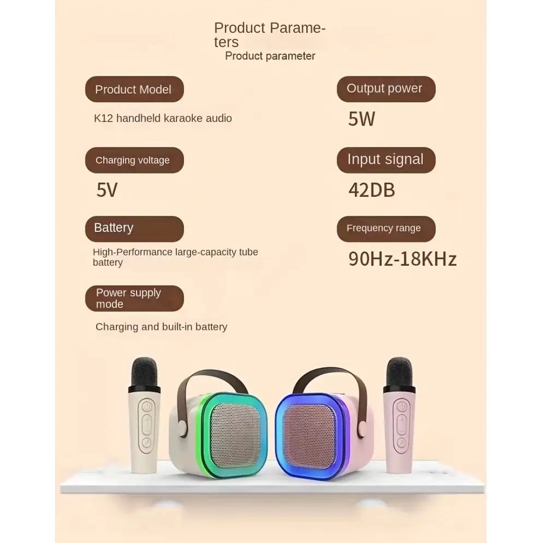 میکروفون بیسیم قابل حمل با اسپیکر، همیشه و همه جا همراه شما برای لحظات نشاطانگیز! این دستگاه همهکاره با طراحی سبک و جمعوجور، بهترین انتخاب برای خوانندگان مبتدی و حرفهای، مجریان مهمانیها و حتی برای سرگرمی در سفر است. میکروفون بیسیم با بلندگوی 6 واتی خود صدایی رسا و شفاف ارائه میدهد که فضای هر جمعی را زنده میکند. با باتری قابل شارژ 800 میلیآمپری و پورت مدرن، دیگر نگران تمام شدن باتری نخواهید بود، هم میتوانید از طریق USB آن را شارژ کنید و هم از باتری داخلی بهره ببرید. سیستم بیسیم این محصول به شما آزادی حرکت کامل میدهد تا بدون محدودیت اجرا کنید. این دستگاه هوشمندانه با طیف گستردهای از دستگاهها از جمله موبایل، تبلت، لپتاپ و پخشکنندهها سازگار است و به راحتی میتوانید آن را به میز یا هر سطح دیگری قرار دهید. چه برای تمرین آواز در خانه، چه برای اجرا در مهمانیهای دوستانه یا حتی برای سرگرمی کودکان، این میکروفون حرفهای همراه همیشگی شما خواهد بود. همین امروز این محصول کاربردی را به سبد خرید خود اضافه کنید و از موزیک لذت ببرید!