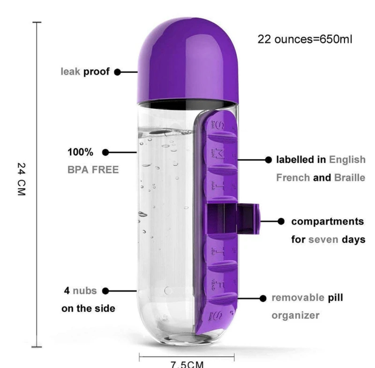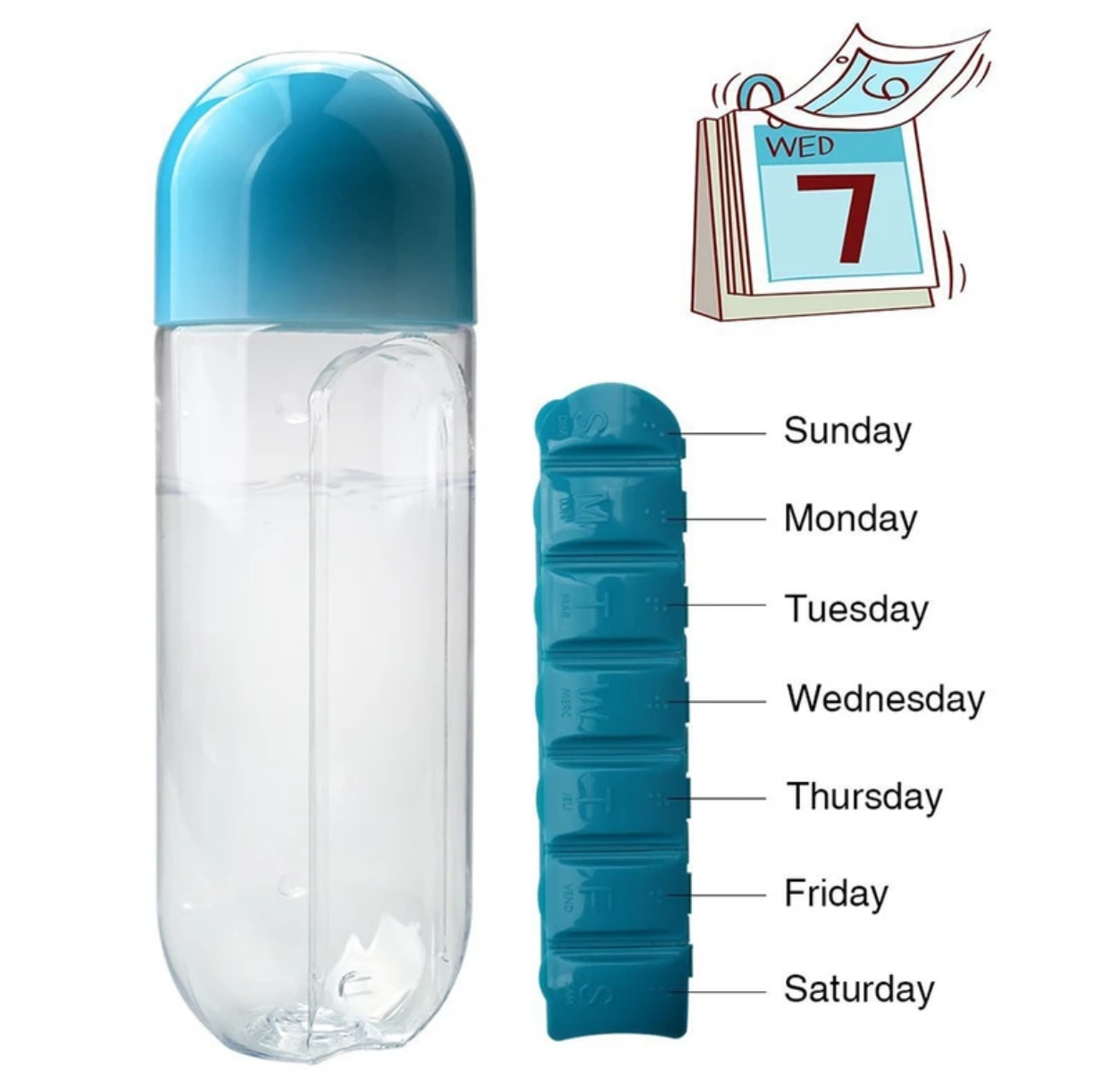 محصول 2 در 1 ترکیب جا قرصی و بطری آب به راحتی مکملهای روزانه و آب مورد نیاز خود را در یک واحد جمع و جور مدیریت کنید. محفظه قرص ۷ روزه داخلی، داروها را منظم و در دسترس نگه میدارد، در حالی که بطری آب تضمین میکند که همیشه آماده هیدراته ماندن هستید. برچسبهای تاریخ شفاف برای استفاده آسان بوده و محفظههای قرص به زبانهای انگلیسی و بریل علامتگذاری شدهاند و به کاربران این امکان را میدهند که دوزهای روزانه خود را به وضوح ببینند و یک برنامه بهداشتی مداوم را حفظ کنند این محفظه با درب محکم و مهر و مومهای محکم، از ریختن و نشت در طول سفر یا جلسات ورزشی جلوگیری میکند و آن را برای استفاده در حال حرکت ایدهآل میسازد. هم بطری آب و هم محفظه قرص را میتوان به راحتی از هم جدا کرد و از هر کدام جداگانه یا با هم استفاده کرد. ایدهآل برای کسانی که به نگهداری آسان اهمیت میدهند. این بطری که از جنس PC سبک ساخته شده است، دارای یک دسته راحت و پایه پایدار برای قرار گرفتن عمودی روی میز یا میز کنار تخت است که برای استفاده در خانه، محل کار یا سفر عالی است.