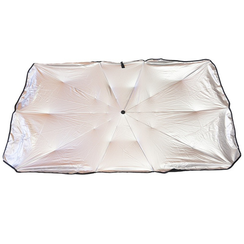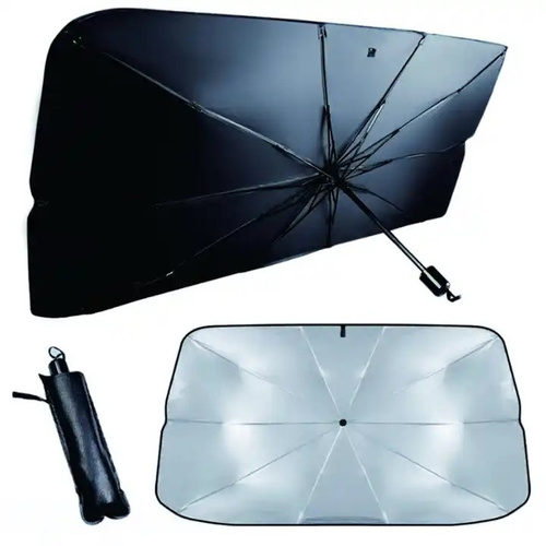 این محصول برای هر گونه محافظت در برابر نور خورشید عالی است.طراحی شده با پارچه محافظ UV طراحی هوشمندانه این چتر (sun shade umberella) نگران افتادن آفتاب گیر از شیشه جلو خود نباشید و آفتابگیر شیشه جلو چتری دارای ده دنده فولادی است که به خوبی پشتیبانی و از سقوط جلوگیری می کند.طراحی تلسکوپی آفتاب گیر، باعث شده این محصول استفادهای آسان داشته باشد و باز و بسته کردن آن سریع و بدون زحمت باشد.طراحی فوقالعادهای ک با پوشش ضد آفتاب روکش نقره به شدت نور خورشید را منعکس می کند و دمای داخل خودرو را کاهش می دهد و از خودروی شما محافظت می کند.سایبان ضد آفتاب ابزاری کاربردی برای محافظت از داخل خودرو در برابر نور UV و کمک به کاهش دمای داخل ماشین است.