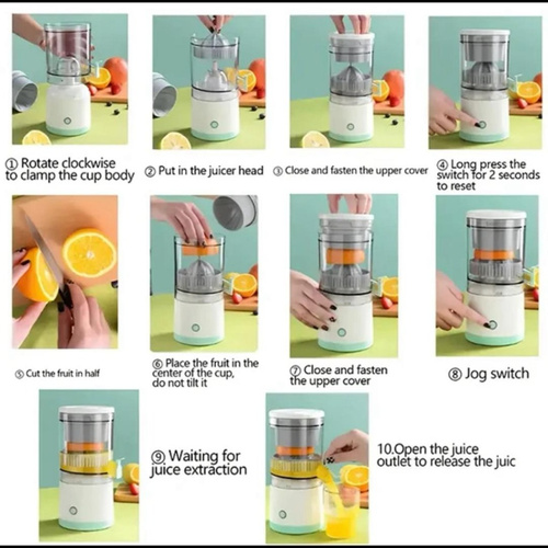 وقتی به فکر درست کردن یک آبمیوه تازه هستید دیگر نیاز نیست یک دستگاه آبمیوه گیری بزرگ را روشن کنید و با مکافات شستن قطعات و مشکلات دیگر مواجه شوید. آبمیوه گیری مرکبات شارژی قابل حمل Citrus Juicer که میتوان گفت یکی از ویژگی های این محصول کارکرد بسیار آسان ، وزن کم و از همه مهمتر قابل حمل بودن آن هست ، بدون شک این محصول را دوست خواهید داشت و از کارکردن با آن لذت خواهید برد. طراحی شارژ USB نسل 3 شارژ شدن راحت حتی با پاور بانک ، بیسیم و قابل حمل، میتوانید در هر زمان و هر مکان آب میوه تازه به شما بدهد بنابراین میتوانید با اطمینان از آن استفاده کنید. برای استفاده از آن کافی است پرتقال ، لیمو شیرین یا سایر مرکبات مشابه را به دو قسمت کرده و هر بار یک قسمت را در محل موردنظر قرار دهید و دکمه شروع به کار را بزنید. دستگاه بصورت اتوماتیک شروع به چرخاندن قالب قرار گیری میوه میکند. خروجی آب میوه گرفته شده دارای محافظ است تا از به هدر رفتن کمتر میزان اب میوه جلوگیری کند. -جنس بدنه: پلاستیک ABS -جنس مخزن: پلاستیک درجه یک مواد غذایی PC -گنجایش مخزن: 400 میلیلیتر -قدرت: 45 وات -ظرفیت: 240 میلی لیتر -ولتاژ: 7.4 ولت -توان: 200 وات