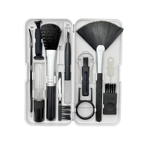در داخل این جعبه سه نوع برس زبر کوچک و دو برس مویی بزرگ وجود دارد که می توانید از آن ها برای تمیز کردن گوشی موبایل، کیبورد و سایر لوازم الکترونیکی استفاده نمایید. همچنین این محصول دارای دو گیره برای خارج کردن دکمه های کیبورد نیز هست که به شما کمک می کند تا بتوانید کیبوردهای خود را به خوبی تمیز نمایید. این پک شامل یک سوزن سیمکارت، یک قلم تمیز کننده لنز دوربین، یک کیت تمیز کننده ایرپاد، اسپری تمیز کننده صفحه نمایش، یک پنس و یک برس تمیز کننده سوراخ نیز می باشد.